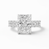 The radiant center stone pairs seamlessly with the crisp facets of the radiant-cut accent diamonds, producing a cohesive, luminous display of brilliance. Contemporary in form yet undeniably refined, The Radiant Erica offers an unforgettable blend of strength, sophistication, and sculptural beauty.